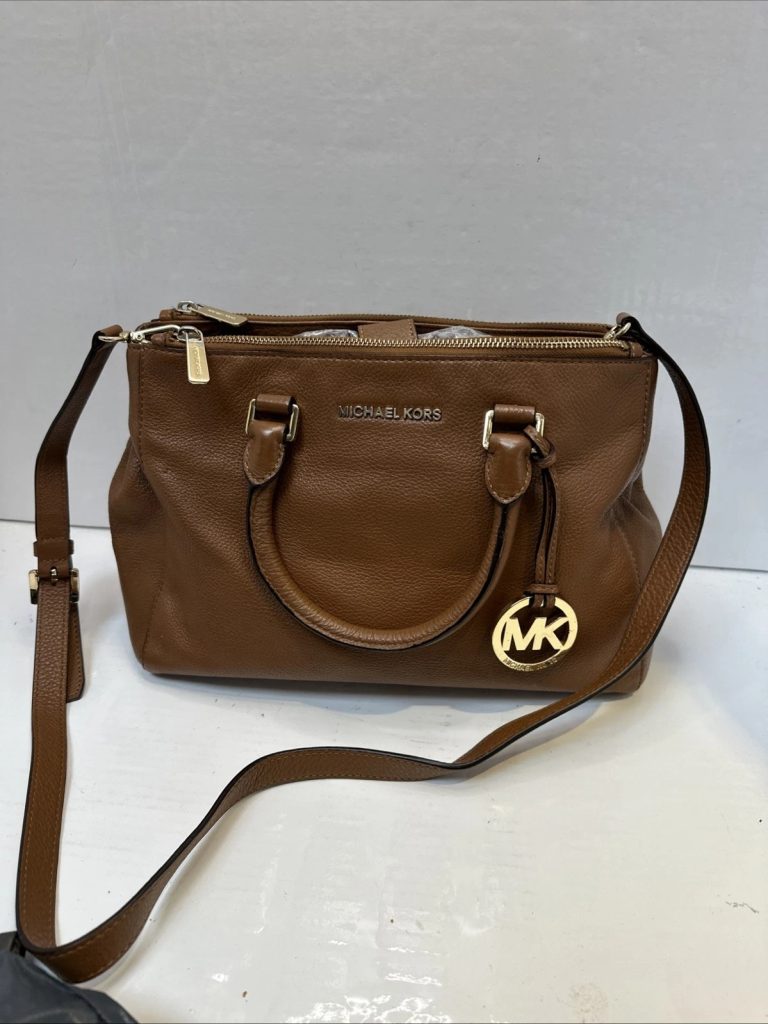 This Michael Kors leather handbag in brown tan is a stylish versatile accessory for the modern woman